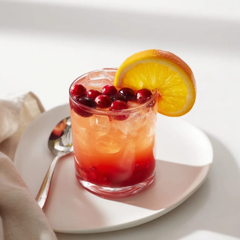 - Serve over ice, garnished with fresh cranberries and orange slices if desired.