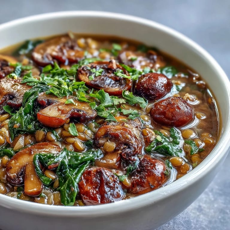 Save Whether you are looking for a high-fiber lunch or a cozy vegan dinner, this Double Lentil and Mushroom Barley Soup is a reliable and delicious choice. Its simple ingredients and straightforward preparation make it a staple for any kitchen.