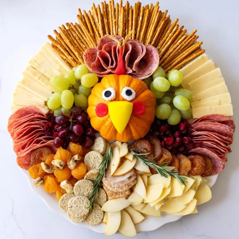 - Arrange sliced meats fan-like above the pumpkin to mimic the turkeys tail feathers. Alternate colors and textures for a vibrant effect.