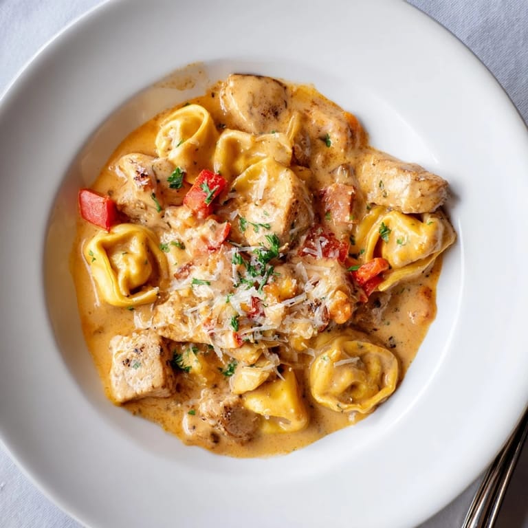 Enjoy this creamy, zesty tortellini hot and garnish with extra Parmesan for a crowd-pleasing finish. It's a perfect fusion for spice and pasta lovers alike.