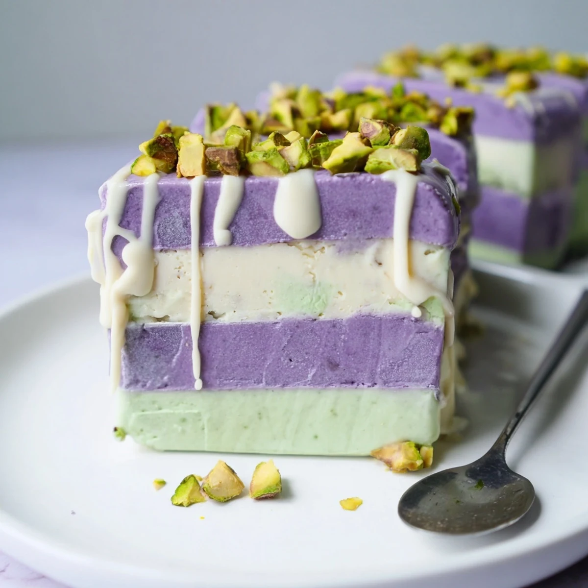 Sweet ube and pistachio combine in vibrant, creamy bars, ideal for summer gatherings and gluten-free diets.