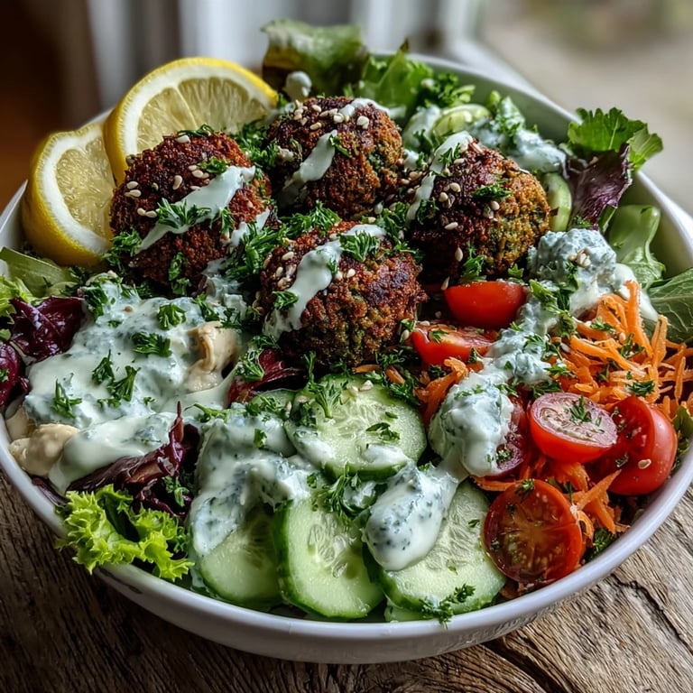 Save My neighbor Leila showed up one afternoon with a container of falafel still warm from her oven, insisting I try them her way: not in pita, but over hummus in a wide bowl. She piled greens, tomatoes, and cucumbers on top, then drizzled tahini like she was painting. I stood there, fork in hand, stunned by how something so simple could feel like a feast. That bowl became my weeknight answer to everything.